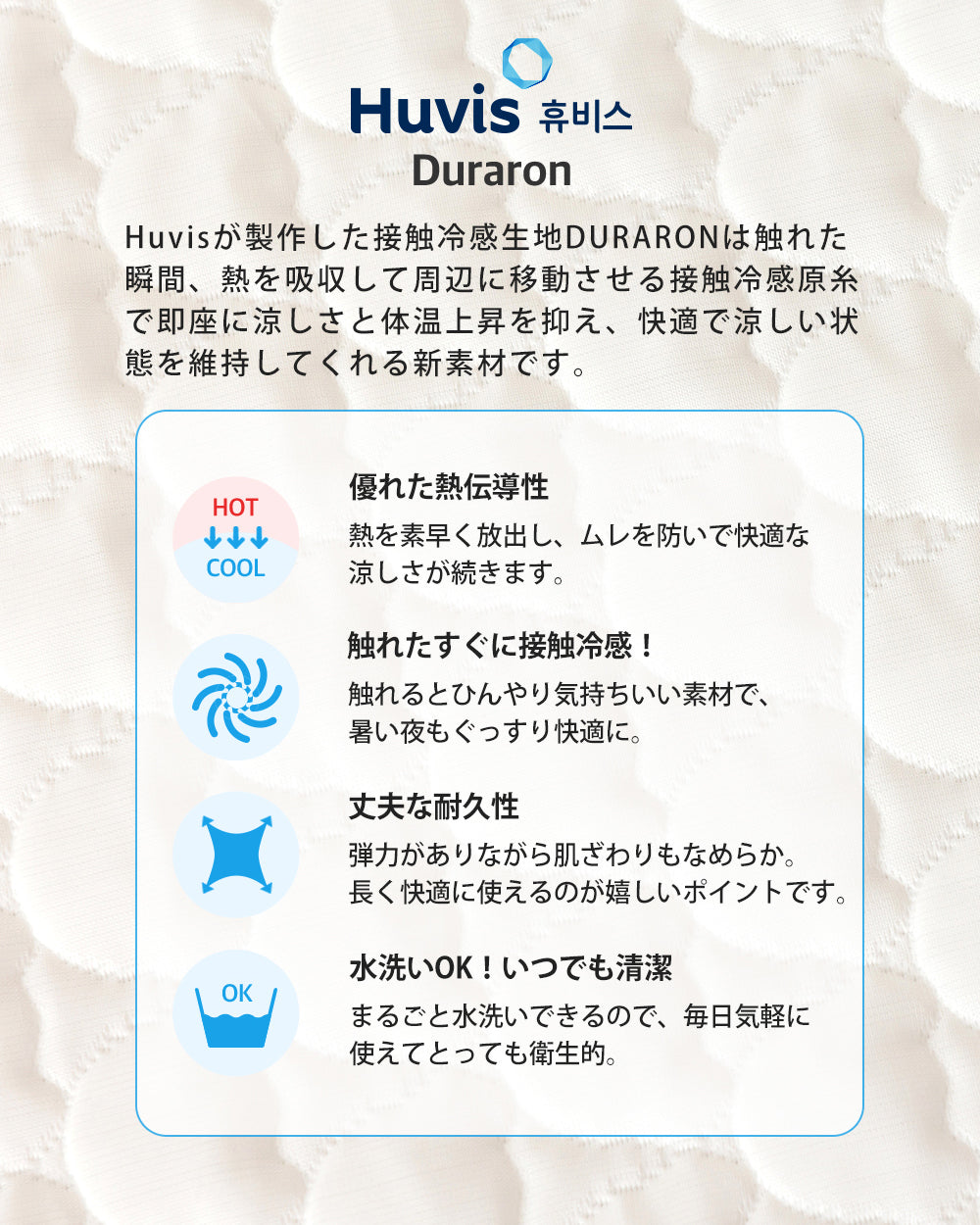 ポリエチレン56%+ポリエステル44%(HUVIS DURARON冷感繊維)