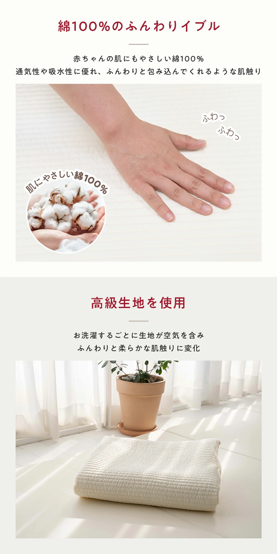 ・120×160cm ・140×200cm ・160×200cm ・180×200cm (±3cm誤差) 厚さ4cmのプレイマットに対応 |